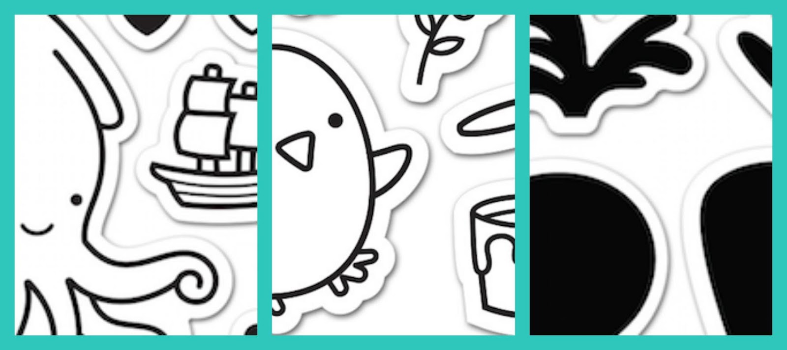 Hmmm…. An octopus and pirate ship, a sweet chick with a paint can and solid veggies along with a plaid background set? I hope I'm right!