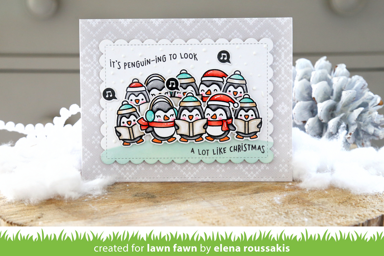 !!!! I love penguins (my first Lawn Fawn set was winter penguin) and what is more adorable than a group of caroling penguins? (Nothing!)