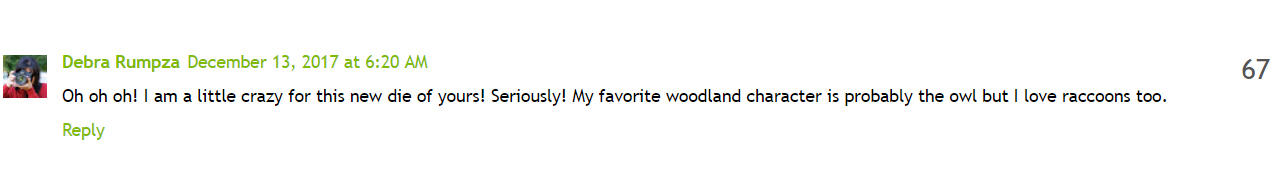 Received my Woodland Huggers Die!! I'm so excited! Thank you Lawn Fawn! I can't wait to make lots of fun projects for my grandkids, and great nieces and nephew… Wheee!
