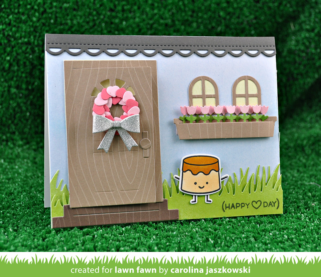 Carolina is one of the Fawnies who works with us at Lawn Fawn HQ! She combined lots of fun die sets with Sweet Friends to create a charming cottage card for Valentine’s Day.