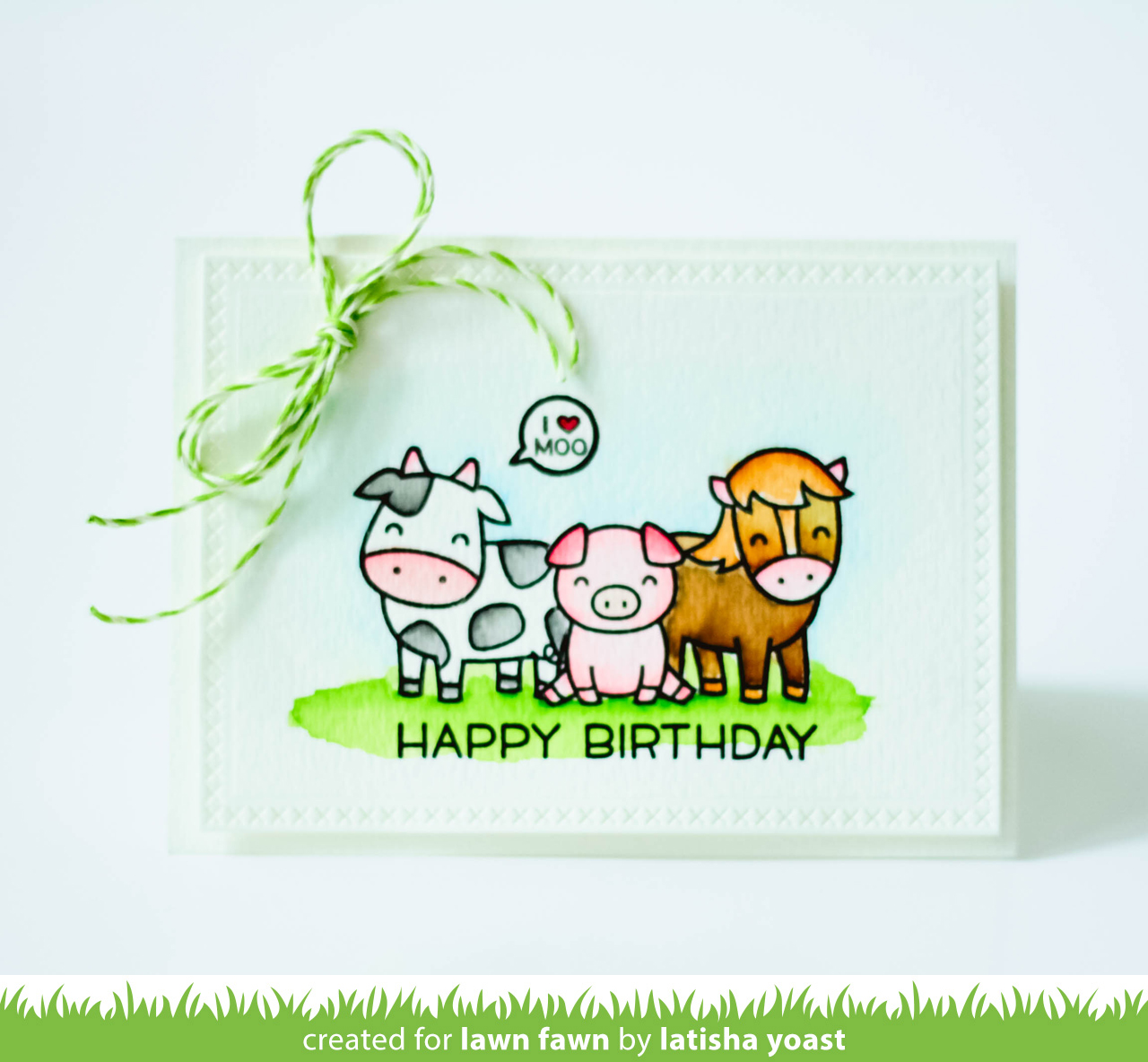 Love all of the new stamp and die sets. I "may" have preordered quite a lot of new Lawn Fawn goodies. My favorite farm critter is that cute cow, but they are adorable!:)