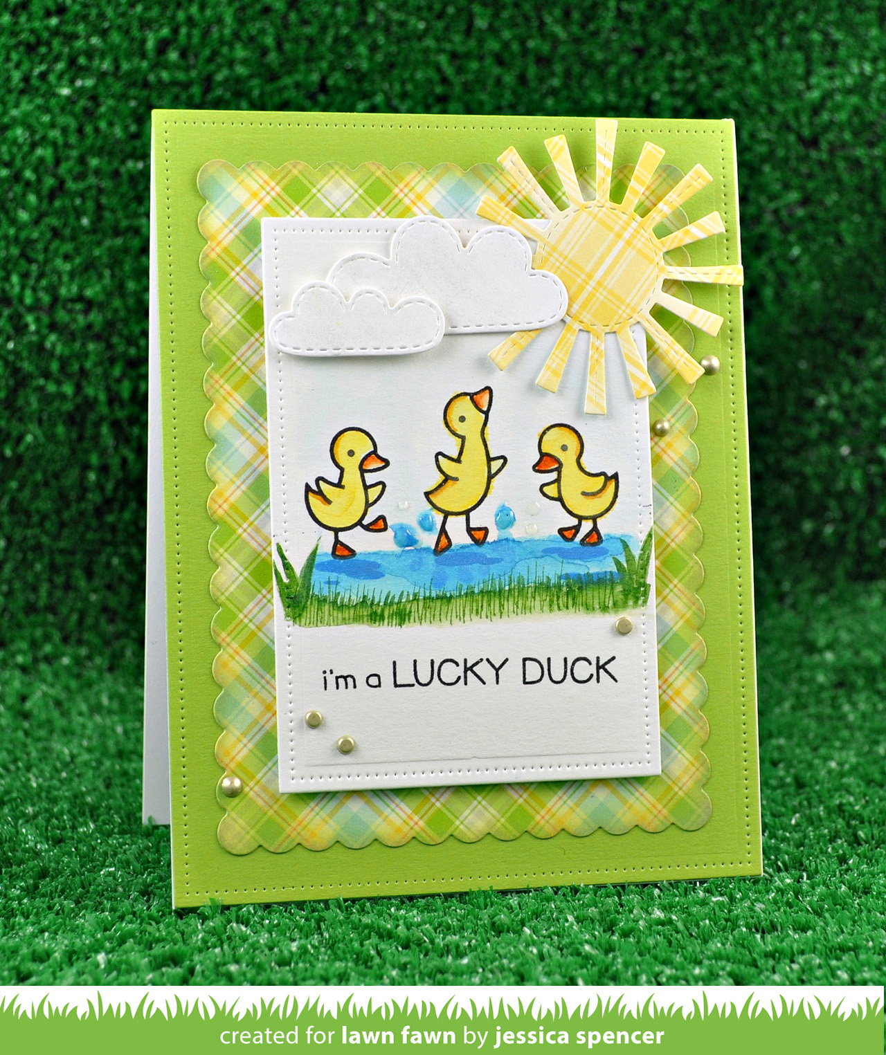 I just love Jessica‘s sunshiney scene! Spring Showers dies and Perfectly Plaid Spring paper are the perfect additions!
