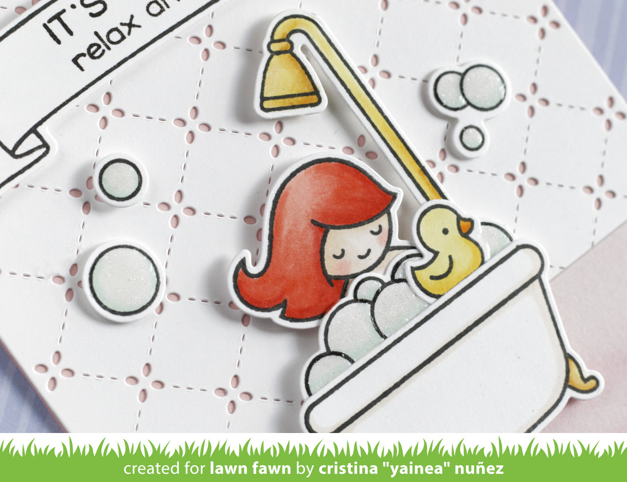How cute is Yainea‘s card with a sweet mermaid relaxing in the tub? This is such a clever idea to pair Rub-A-Dub-Dub with Mermaid for You!