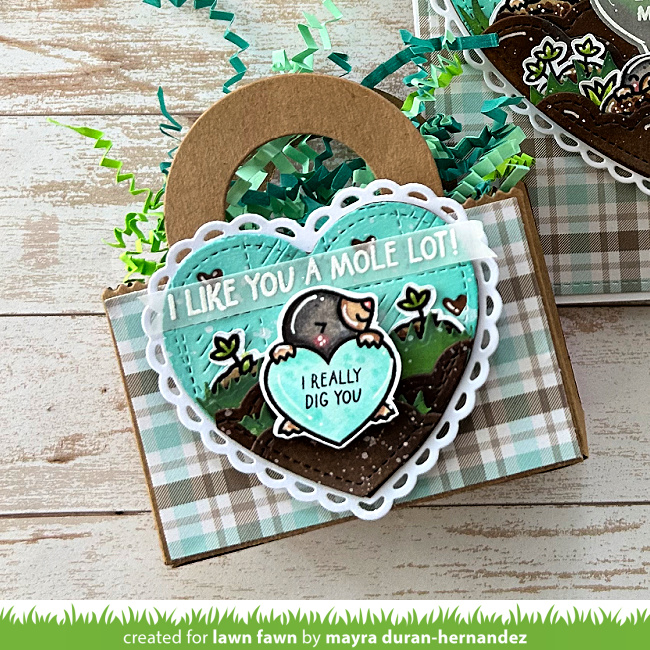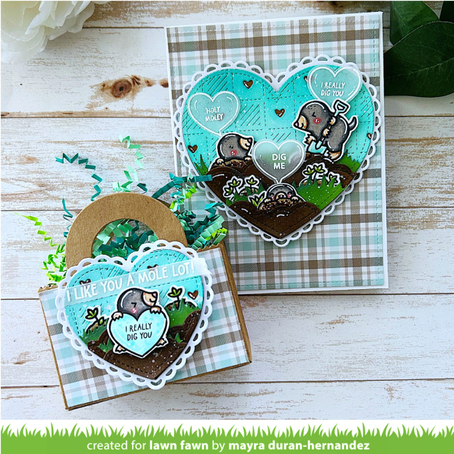 Mayra‘s card and treat bag are so cute and feature our new A Mole Lot of Love and Checkered Hearts Backdrop! Her design so perfect for Valentine’s Day and all year!