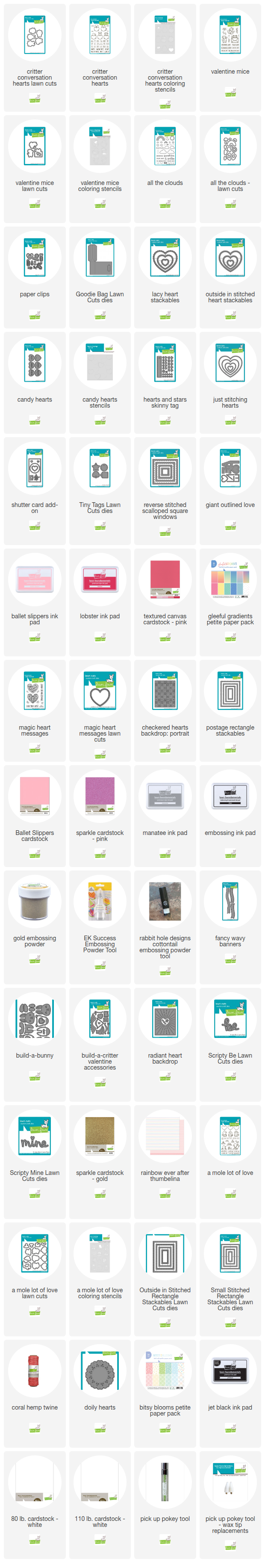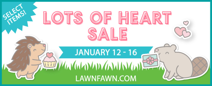 And don’t miss our special Lots of Heart Sale this week! You will find select love, heart and Valentine themed items on sale January 12 – 16! Visit the Lawn Fawn shop and fill your cart with Lots of Heart!