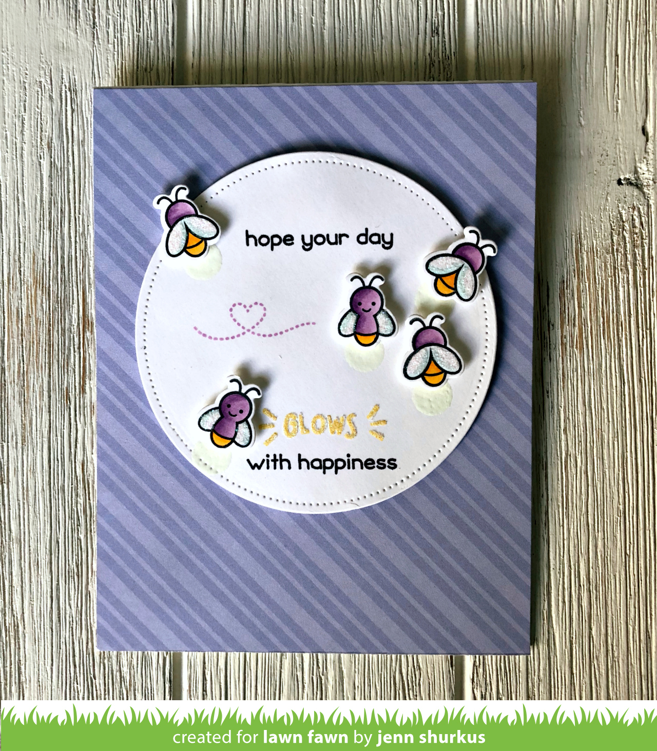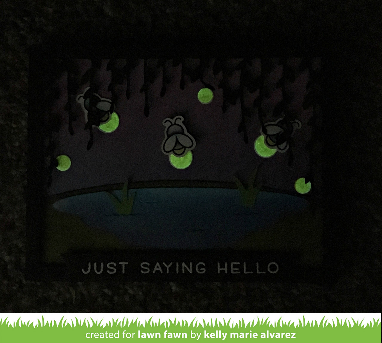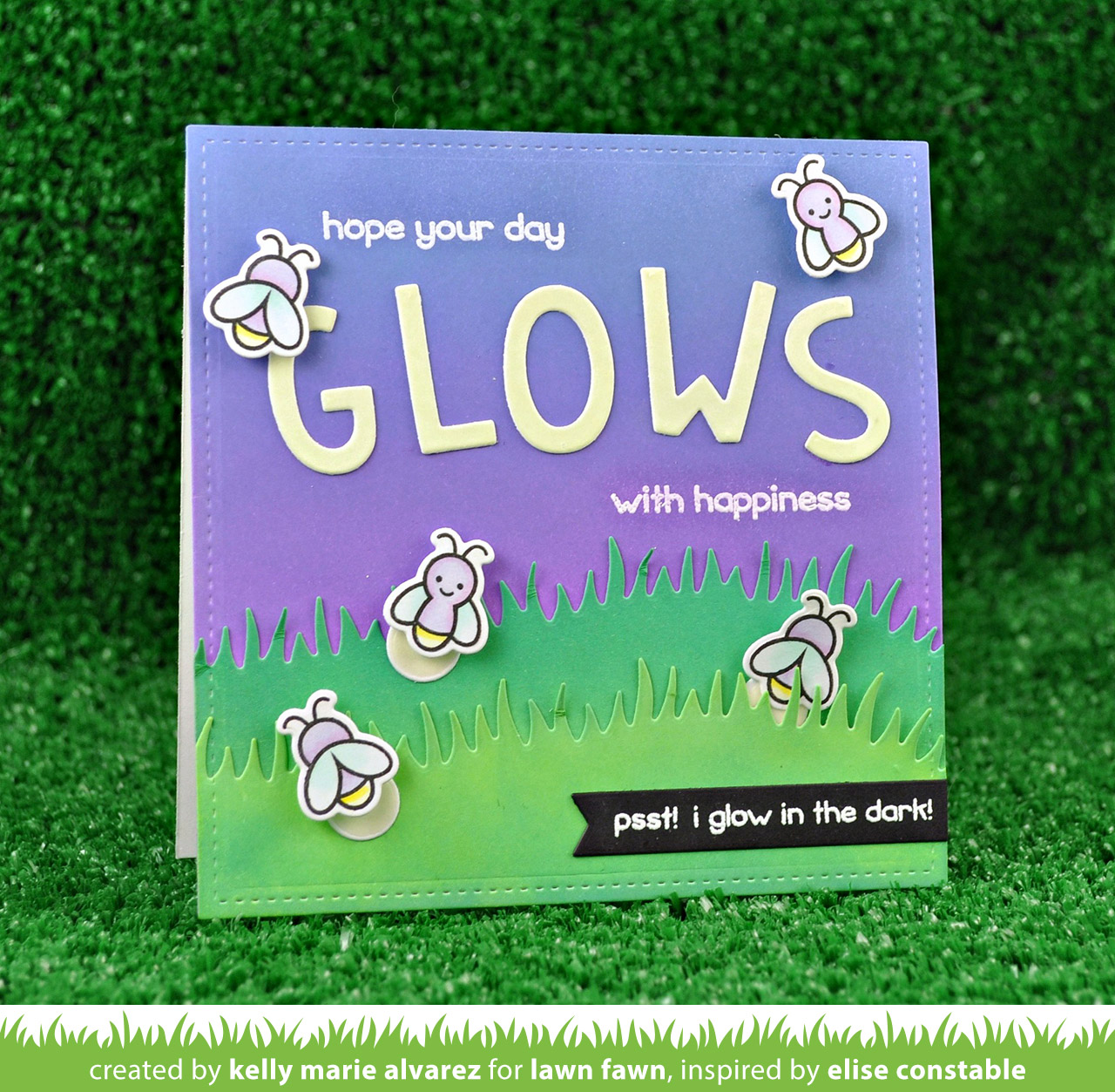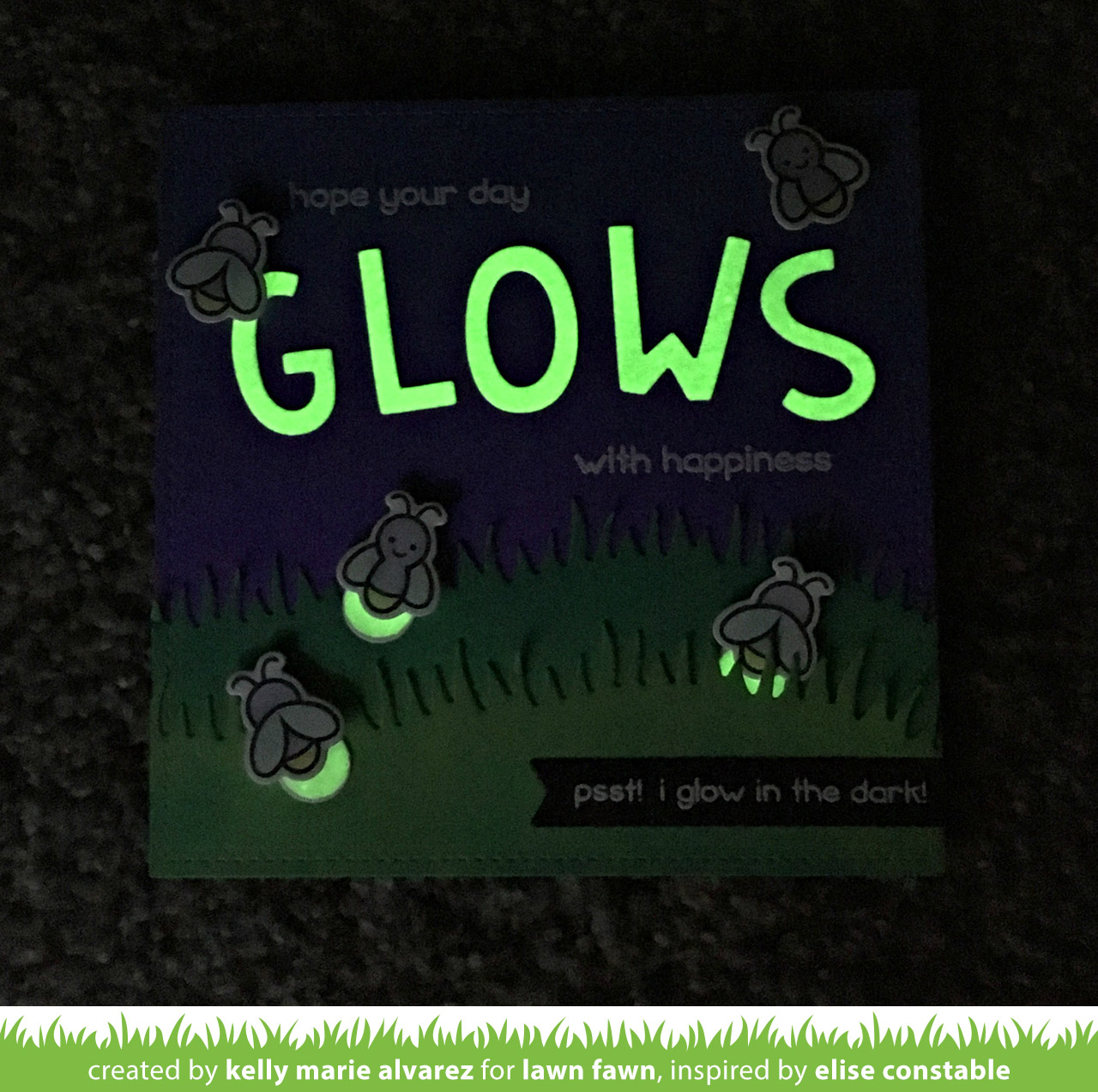Today we are introducing our Little Fireflies stamps and coordinating dies, Lights Out stamps and coordinating dies and our awesome new Glow-in-the-Dark Embossing Powder! Little Fireflies will have you glowing with happiness! The happy fireflies in this mini set would be cute on a birthday card, or for anytime you want to make someone smile! The Lights Out set of icons and sentiments are the perfect addition for cards and crafts made with glow-in-the-dark embossing powder. They are a great way to let your recipient know that there’s something special about your card!