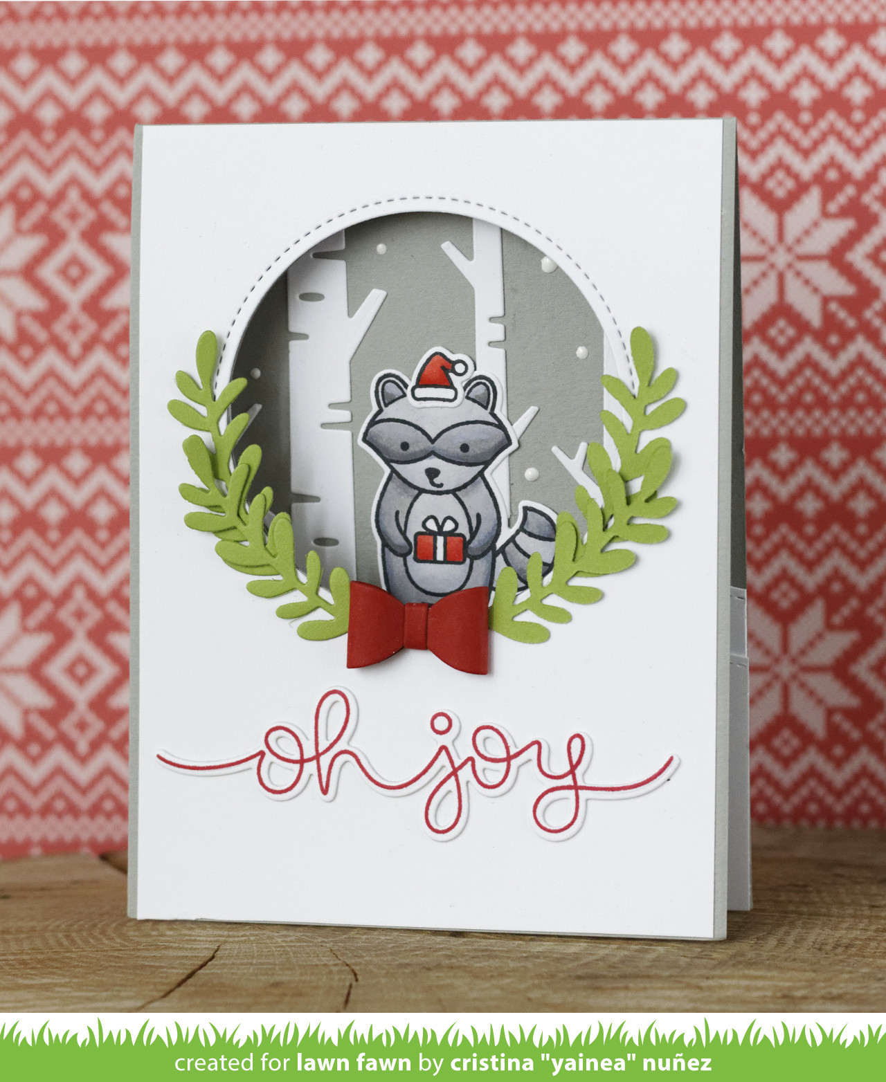 The cheery greeting combines Scripty Hello and happy! You can find a “happy” word in many of our sets, Renata used the one in Oh Gnome.