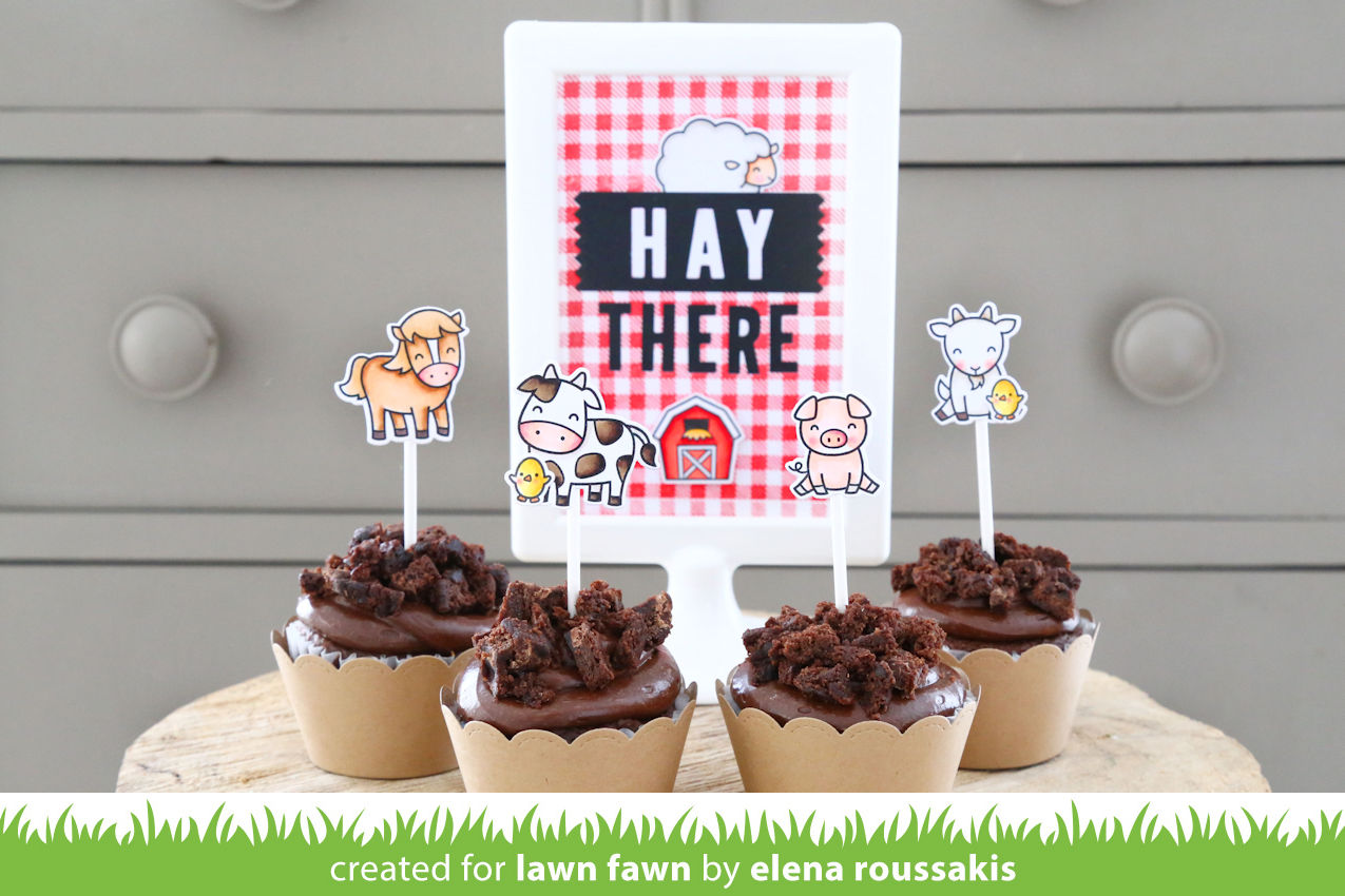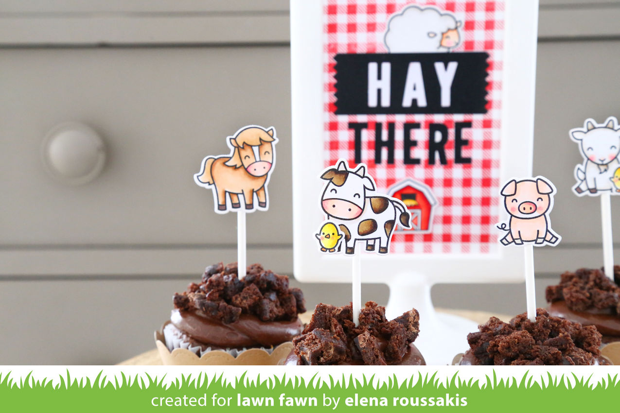 The cute bunnies and accessories are from our new Some Bunny set! Elena created sweet cupcake toppers, bottle labels and treat box decorations with Mini Picture Frames!