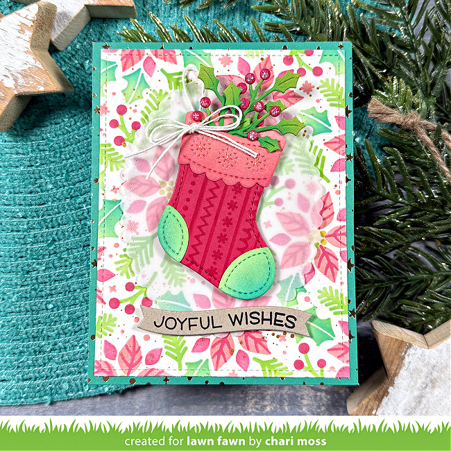 Chari‘s Christmas card combines a gorgeous, stenciled background with our new Christmas Stocking! You can watch the video below or click HERE to watch at our YouTube channel.