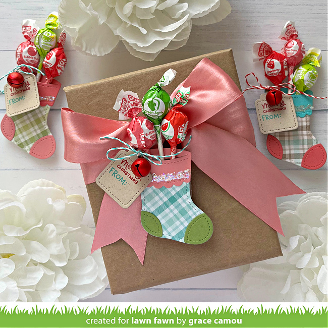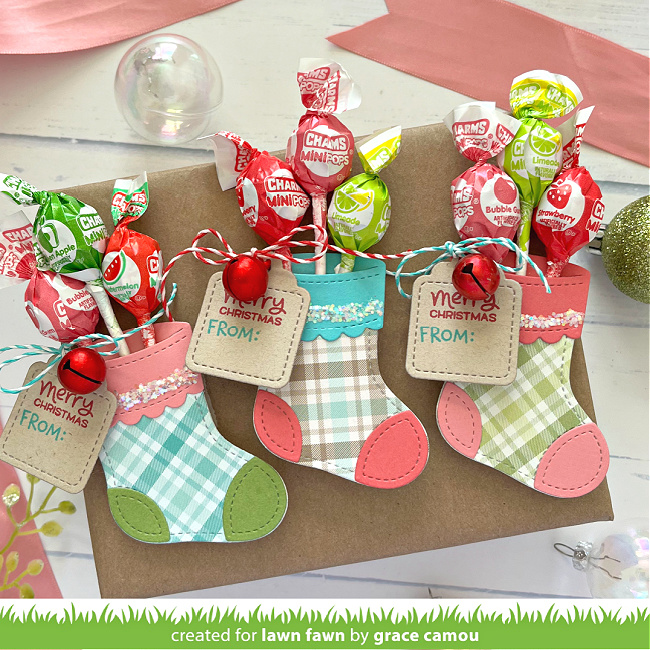 And then Grace tucked some colorful lollipops through the slit in the top of the stockings making them even more fun!