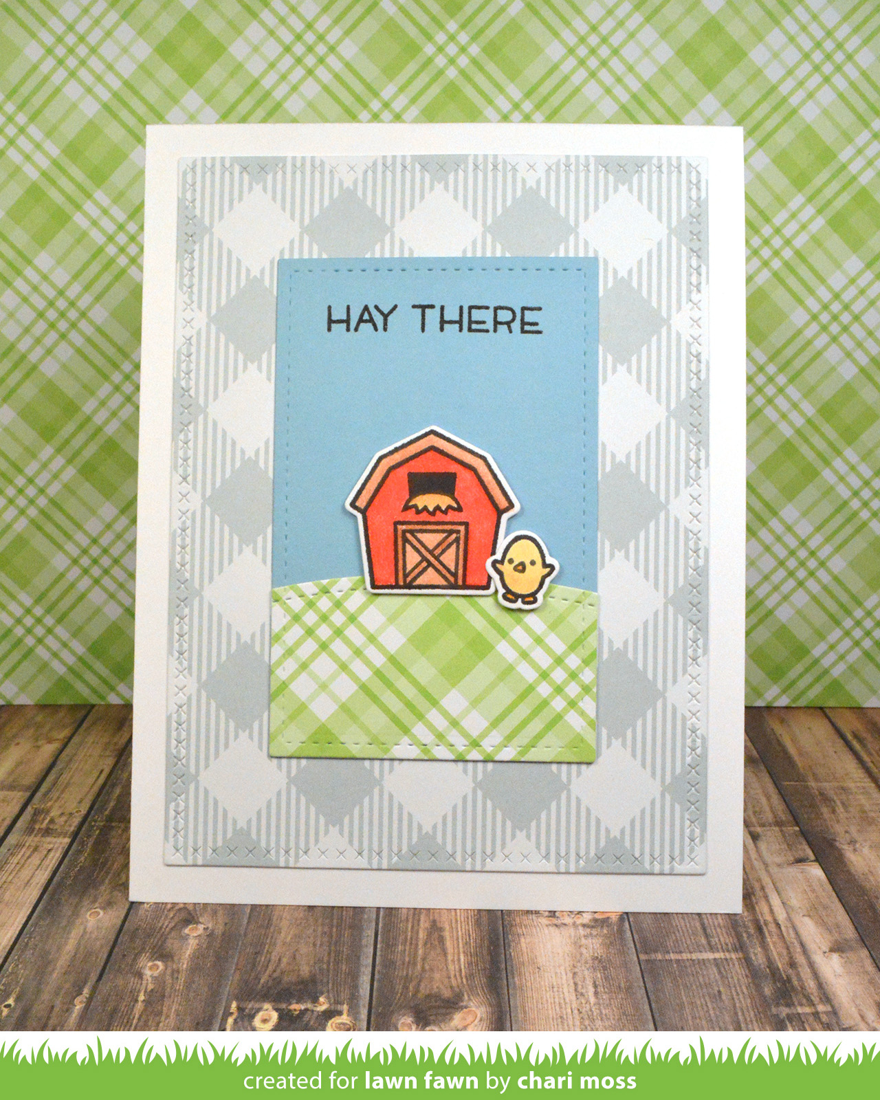 The combination of Perfectly Plaid Spring with the fun Really Rainbow stripe paper make a great backdrop for Yainea‘s cute Hay There scene!