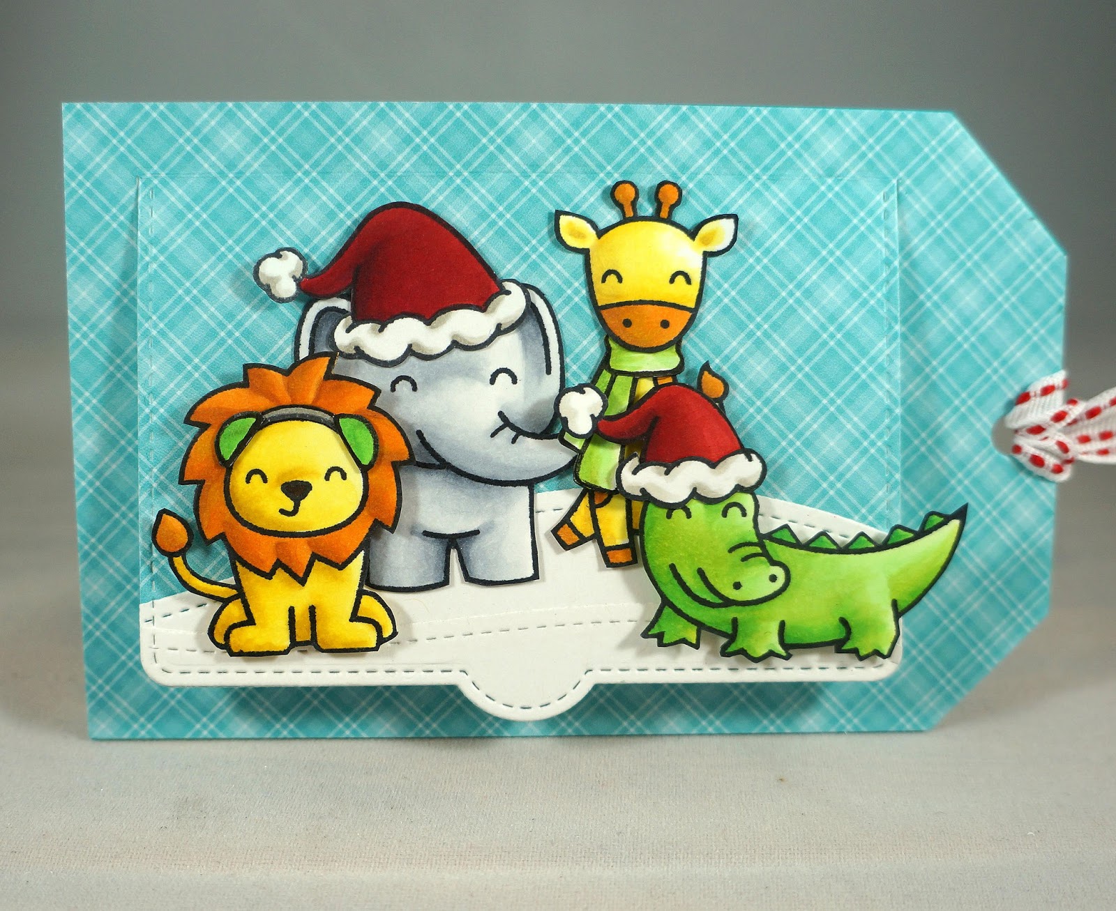 Yainea made a Center Picture Window Card with the happy little Mice on Ice! She added trimmed down Say What? Gift Tags to the front and back so the card can be tied closed with some Peppermint cord!