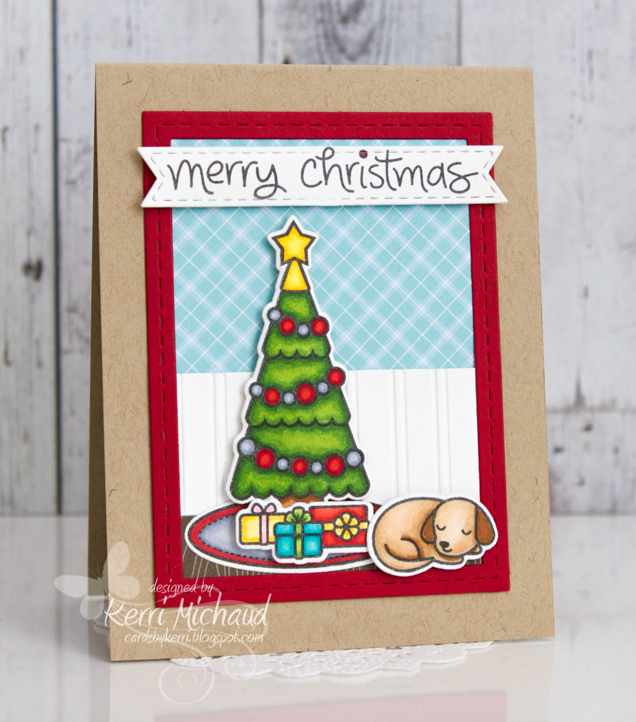 Megan created a beautiful holiday scene with a window to the outside! She used Foursquare Backdrop: Portrait to make the window and filled the scene with images from Keep on Swimming, Christmas Dreams and Say What? Pets. I love the scalloped window valance with the festive holiday bow!